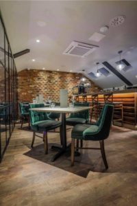 Moving up stairs into the VIP bar the brickwork changes somewhat. Our Cinda brick slips which are part of the Vertex range bring a modern design twist to this cosy space.