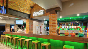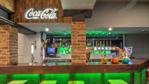 One of the most prominent features of this room is the showpiece copper moulded bar lit below with energising green LED lighting. Sleek and crisp steel stools finished with timber seat tops make the finished article unique, eye catching and very appealing.